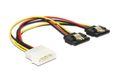 Dieses Kabel von Delock dient der Stromversorgung von zwei Geräten mit SATA 15 Pin Stromanschluss über einen freien Molex 4 Pin Stromanschluss des Netzteils. Die Metallclips an den SATA Buchsen sorgen dafür, dass die Kabel zuverlässig einrasten.