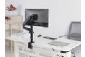 Die Halterung ist einfach zu installieren und wird an Ihrem Schreibtisch befestigt, wodurch wertvoller Arbeitsplatz gespart wird. Seine Gelenkarme bieten einen großen Bewegungsbereich, sodass Sie Ihren Monitor in der perfekten Höhe und im perfekten Winkel für Ihre Bedürfnisse positionieren können. Die Gasfederstruktur sorgt für ein höheres Maß an Flexibilität und Präzision bei der Überwachung der Positionierung und erhöht so den Komfort und die Produktivität. Mit ihrer langlebigen Konstruktion und dem schlanken Design ist diese Halterung eine ausgezeichnete Wahl für die Schaffung eines ergonomischeren und organisierteren Arbeitsplatzes."