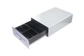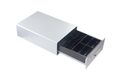 Equip Kassenschublade für Point of Sale (POS)-System, 4 Schein-/4 Münzfächer, herausnehmbare Münzschlitze, RJ11-Anschluss, Aluminium. Produkttyp: Manuelle und automatische Geldschublade, Gehäusematerial: Metall, Produktfarbe: Silber. Breite: 230 mm, Tiefe: 338 mm, Höhe: 110 mm. Anzahl der enthaltenen Schlüssel: 2 Stück(e). Anzahl Produkte pro Versandkarton: 1 Stück(e), Gewicht Versandkarton: 3,5 kg, Länge des Versandkartons: 355 mm